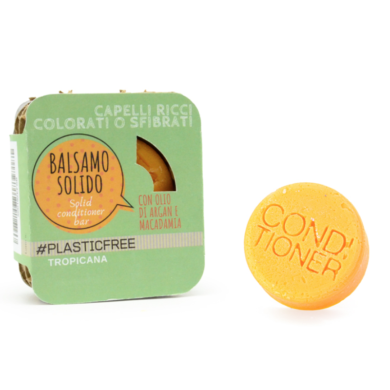 Il Balsamo solido Tropicana con olio di argan e olio di macadamia grazie alle loro proprietà lo rendono adatto per le chiome di capelli ricci, sfibrati o colorati.