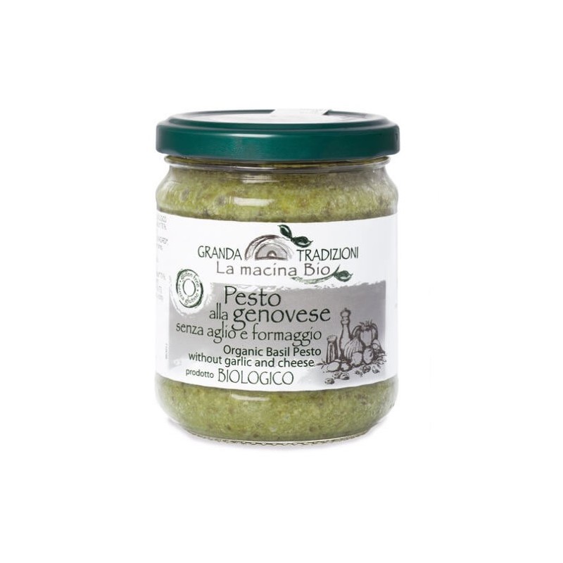 INGREDIENTI:* Basilico semilavorato 47% (basilico 63%, olio extra vergine di oliva, sale marino, antiossidante: acido ascorbico), olio extra vergine di oliva, anacardi, pinoli, correttore di acidità: acido lattico.