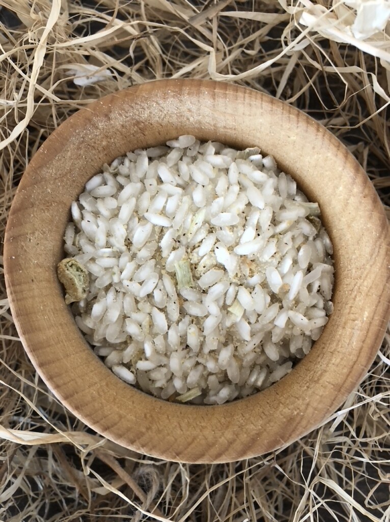 Ingredienti: riso carnaroli, nocciole piemontesi e porri.
